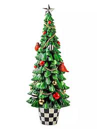 Jolly Holiday Trophy Tree-$973.49 -From the Jolly Holiday Collection. Mac Kenzie-Childs' illuminated Trophy tree is crafted of resin and decorated with faux beads, ornaments, and cardinals. A three-dimensional Courtly stripe star and check finish this piece.; Goldtone beads; Resin; Spot clean; Imported SIZE; 18"W x 4"HPlease note: Requires three AA batteries. Batteries not included.