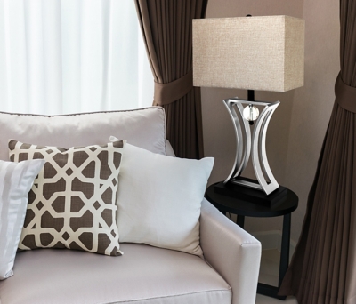 Ashley Homestore- Home Accents Elegant Designs Chrome Executive Business Table Lamp, Metallic-$79.99  Euro Style Axel High Back Office Chair, Black-$432