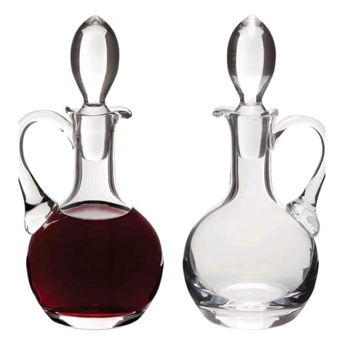 180.95 Communion Ware - This set of 2 glass cruet bottles come with glass stoppers. Cruets are used to hold the water and wine prior to the consecration during mass. Set of 2 Cruet Bottles Quality Craftsmanship Glass cruets for Mass Catholic Church supplies Cruets measure 8.125 inches tall Hold up to 10 oz. of liquid Made in USA.