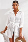 Casual Long Sleeve Striped Shirt Dress Beach Swimsuit Cover Ups with Belt - $35.99 from: Pink Queen
