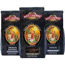 Medium Roast Whole Bean Kona Coffee Tri-Pack gourmet coffee>coffee beans>kona coffee>organic - Medium Roast Whole Bean Kona Coffee Tri-Pack-Triple pack of award-winning Kona Coffees, perfect to sample our different coffees or to give as a gift. The tri-pack includes: Grande Domaine Kona Coffee, , a Kona Coffee Cupping Contest Winner for outstanding quality and balance. Our award-winning Private Reserve Kona Coffee, the Kona Coffee that Forbes called "Best in America" Estate Kona, from a high elevation, single estate farm; a classic taste of Aloha Roasted to a perfect medium roast to showcase the flavor unique to the slopes of the Mauna Loa volcano on which Kona Coffee beans are grown. Whole bean Kona Coffee, because you already know the aroma of freshly ground is enough to put a smile on your face, before you even pour the water.This is the coffee Forbes called Best in America!