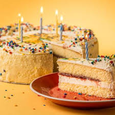 Vanilla Birthday Cake - 10" -$54.95 -Happy Birthday written in swirls of pastel colors and candy confetti decorates this luscious vanilla cake stuffed with raspberry jam and vanilla buttercream filling for a very festive look. Both fun and delicious. A gift card with your personal gift message will be included. Diameter: 10" Weight: 3 lbs. 5 oz. Serves: 16|David's Cookies - HomePage