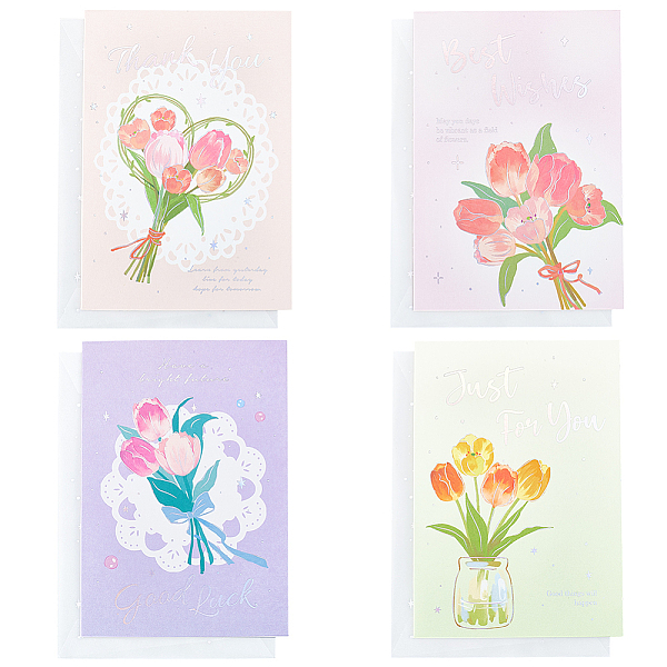 4.20 Greeting Card>Insert Card Decoration - with Envelope, Rectangle with Flower Pattern, Mixed Color, 150x105x0.9mm.