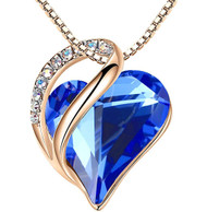 125.95 wedding rings>wedding bands - Women's 18K Rose Gold Plated Infinity Love Heart Pendant Necklace with Dark Sapphire Blue September Birthstone Crystals. Jewelry Gifts for Her, 18 + 2 inch Chain, Anniversary Birthday Mother's Necklaces for Wife Mom Girlfriend-Introducing our stunning Women's 18K Rose Gold Plated Infinity Love Heart Pendant Necklace with Dark Sapphire Blue September Birthstone Crystals. This exquisite piece of jewelry is the perfect gift for her. The pendant features a captivating dark sapphire blue birthstone crystal, symbolizing loyalty and wisdom. The infinity love heart design represents eternal love and commitment. The pendant hangs gracefully from an 18-inch chain, with an additional 2-inch extender, ensuring a comfortable fit. Made with high-quality materials and plated with 18K rose gold, this necklace exudes elegance and sophistication. Ideal for anniversary, birthday, or Mother's Day gifts, this necklace is a true treasure for your wife, mom, or girlfriend. Indulge in the beauty of Sapphire Blue - Rose Gold Plated Infinity Love Heart Pendant! Dark Sapphire Blue - Rose Gold Plated Infinity Love Heart Pendant (September Birthstone) with CZ stones and includes 18" chain. SPECIFICATION: Lobster Clasp Chain Length: 18 inches. Approx: Pendant Size: 0.75" x 0.88", Main Stone: Premium Birthstone Crystal; White Crystals AB (Small Zirconia); Plating: 18K Rose Gold; Pendant Shape: Heart; Clasp: Lobster Claw. It is lead free, nickel free, and allergy free. CARE INSTRUCTIONS: As with any plated jewelry. Keep it dry and avoid wearing it when bathing, doing housework with chemicals and swimming. Perfume and lotions may be corrosive to jewelry. Wear your perfume or lotion before putting on the piece. Do not expose to air for a long extended periods of time, put into sealed bag or box when not worn. Rub your Jewelry with a soft cloth periodically and wear it carefully. Includes jewelry gift box. Perfect gifts for Valentine's Day Gifts for Women, Anniversary gift for Wife, Girlfriend... Mother's Day Necklace Pendant Gift for Grandma, Mom... Birthday Gift, for Sister, Daughter, Relative, Friends, Christmas Gift, Wedding Gift etc. Warranty Guarantee Included. (Please note: lost items or damage due to resizing or alterations are NOT covered). Please note alterations with void return policy.SellerSavingsDirect.com