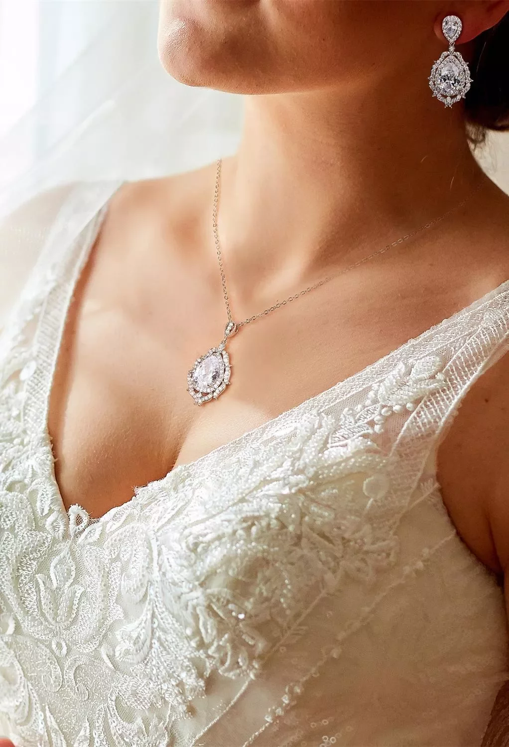 AW Bridal Cubic Zirconia Necklace Earrings Women Jewelry Set